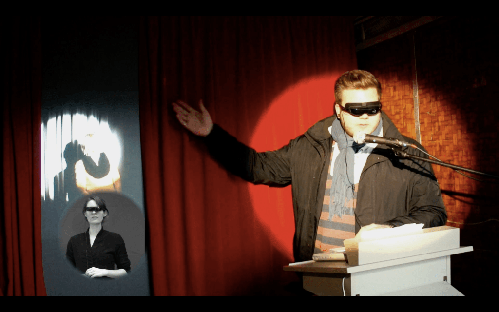 Im Rahmen des Oldenburger PAZZ Performance-Festivals 2012 erhielten Redner:innen die Möglichkeit, Reden live zu halten und Verzeichnisse ihrer öffentlichen Vorträge zu erstellen und in eine Videobrille einzuspeisen. Die künstlerische Untersuchung eröffnete eine experimentelle Schau von Gesten und Sprachmelodien beim rezitieren, auswendig lernen, auflisten und vortragen.