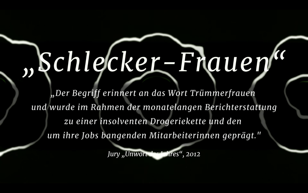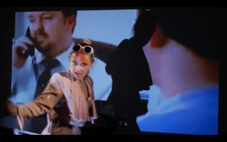 Diese Dopplung greift die Gruppe office gruppengroup formal auf, indem die Ausschnitte der „Büroserien“ auf Bildschirmen sowie live auf der Bühne performativ aufgegriffen werden – wiederholt, kommentiert oder abstrahiert werden. Die Reenactments kommen neben den Originalfilmausschnitten zur Aufführung. Parallel zu kommentierten Found Footage Kollagen in Projektionen und auf Monitoren werden die Bewegungs- und Sprachmuster teils synchron teils rhythmisiert inszeniert.