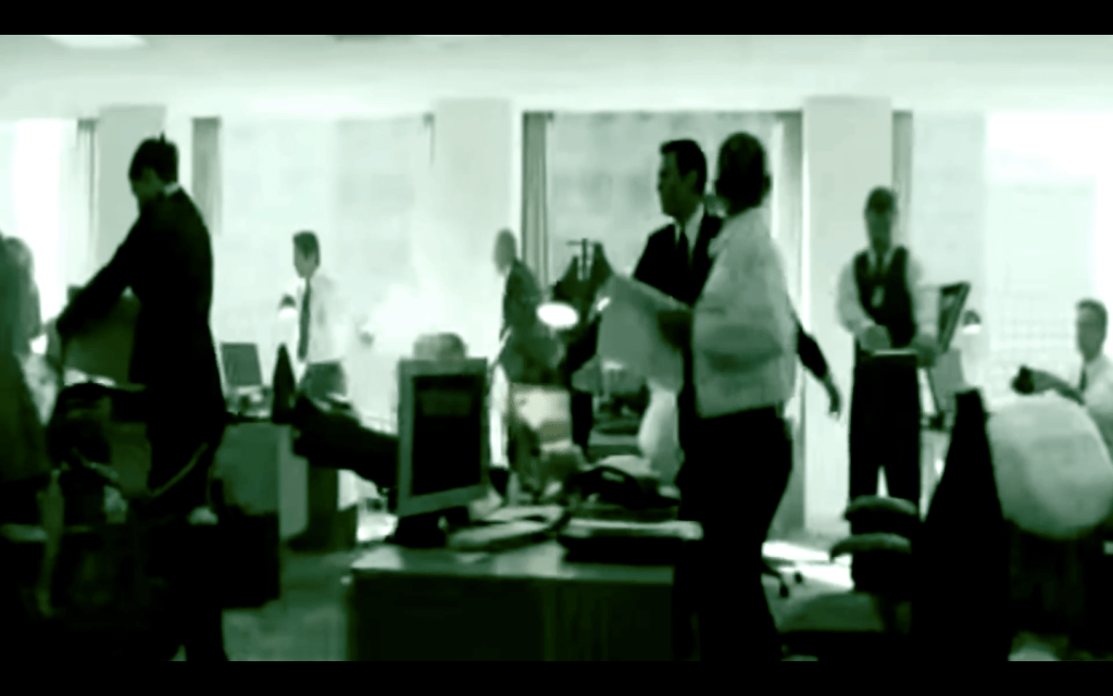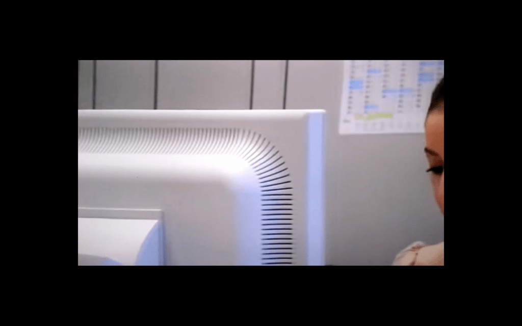 Die Rezipient_innen an den Bildschirmen zu Hause haben ihre Bürobildschirme verlassen. Sie schauen nach Dienstschluss auf die Monitore der fiktionalen Angestellten und durchleben die eigene Arbeitswelt in Doppelbildern diverser Bürolandschaften.