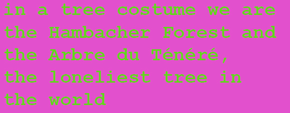 Im Baumkostüm sind wir der Hambacher Forst und der Arbre du Ténéré, der einsamste Baum der Welt